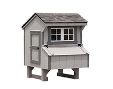 3 x 4 SmartSide Quaker Chicken Coop shown with Granite Gray Shingles, Light Gray SmartSide Siding & Dark Gray Trim |