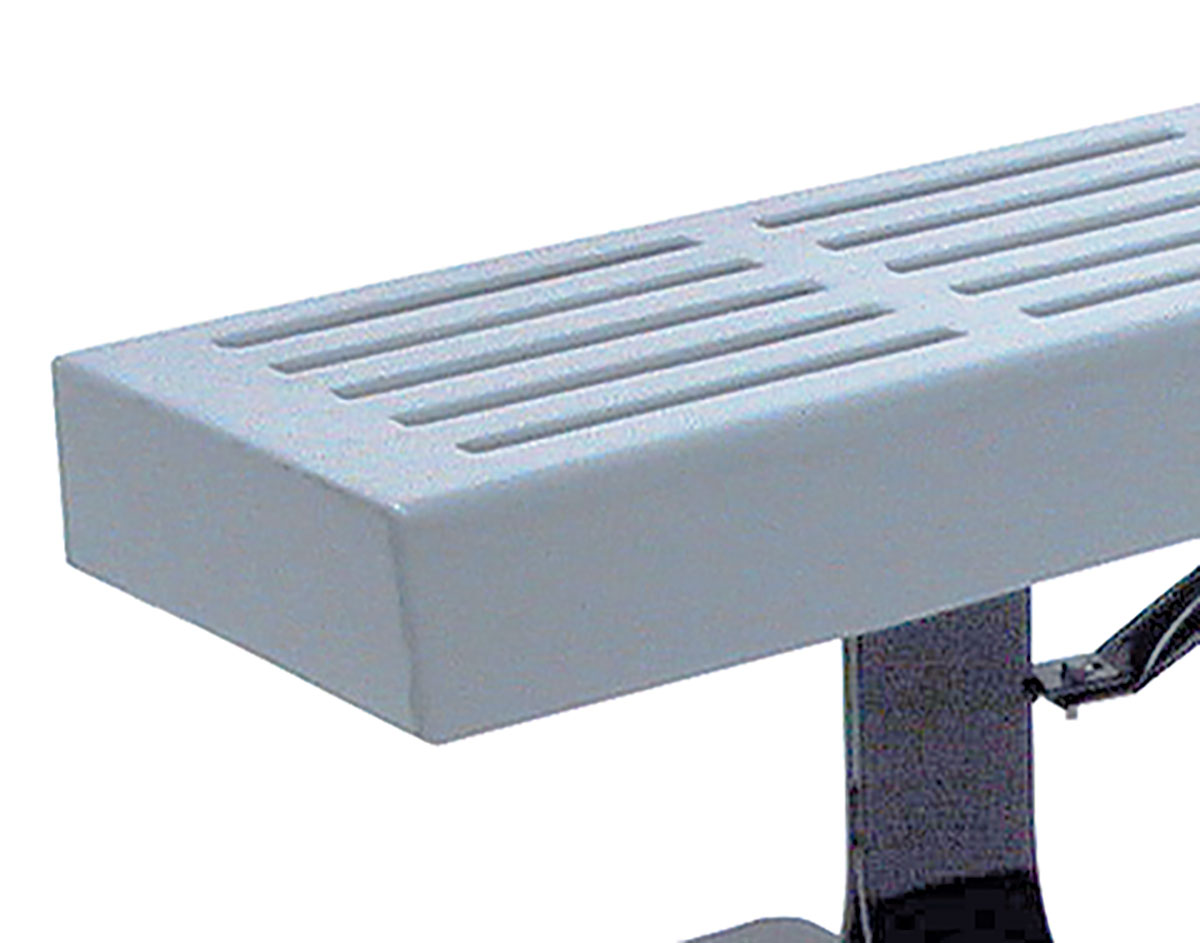 Close up of seat of 6' Steel Slotted Garden Bench shown in Gray